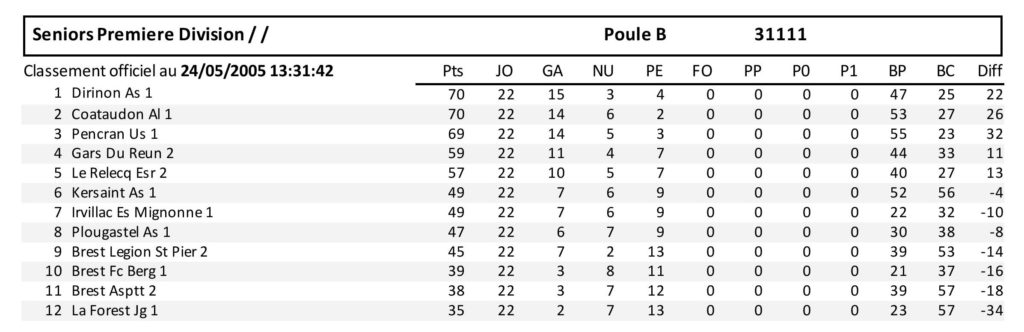 DIVISION 1 | CLASSEMENT