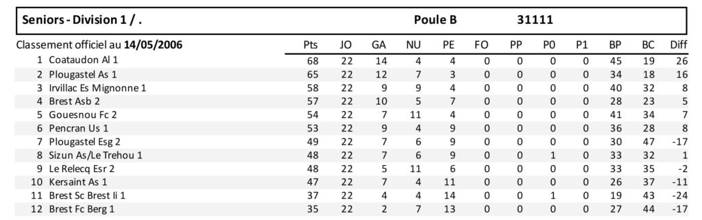 DIVISION 1 | CLASSEMENT