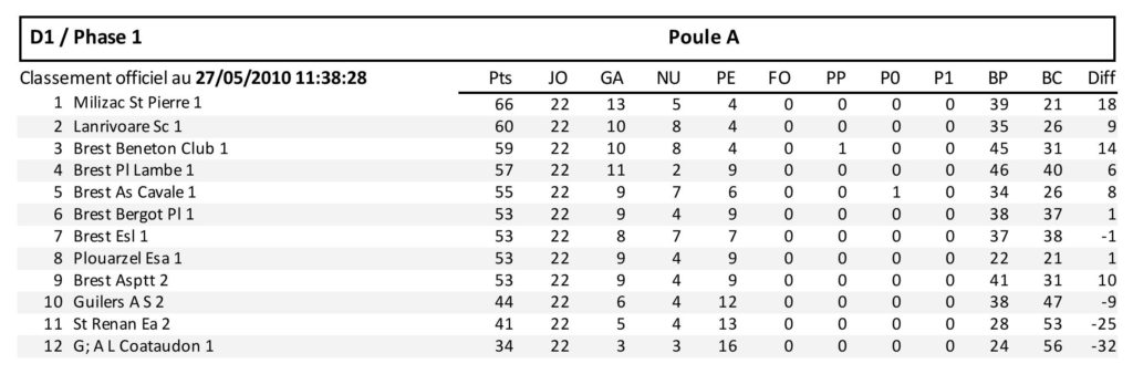 DIVISION 1 | CLASSEMENT