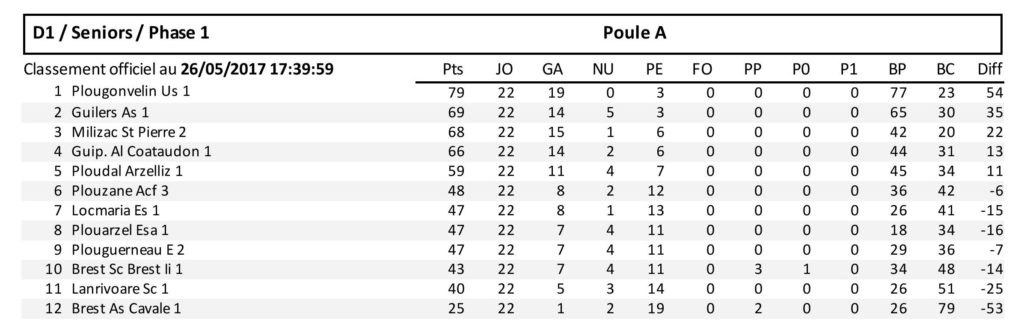 DIVISION 1 | CLASSEMENT
