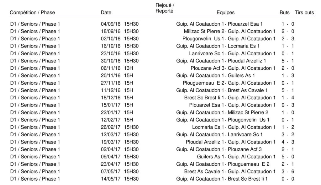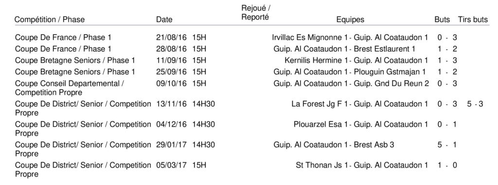 | LES MATCHS JOUÉS